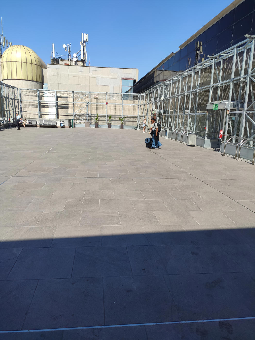Barcelona-El Prat has outdoor smoking terraces after security in both terminals. Terminal 1 features a large open-air terrace near McDonald's and Starbucks, free to use without purchase (confirmed June 2025). Terminal 2 has an open terrace after security between Gates R and B near McDonald's/McCafe and Gate S23, with a bar on-site (confirmed December 2025). Before security, smoking is permitted in designated areas outside the terminal buildings.