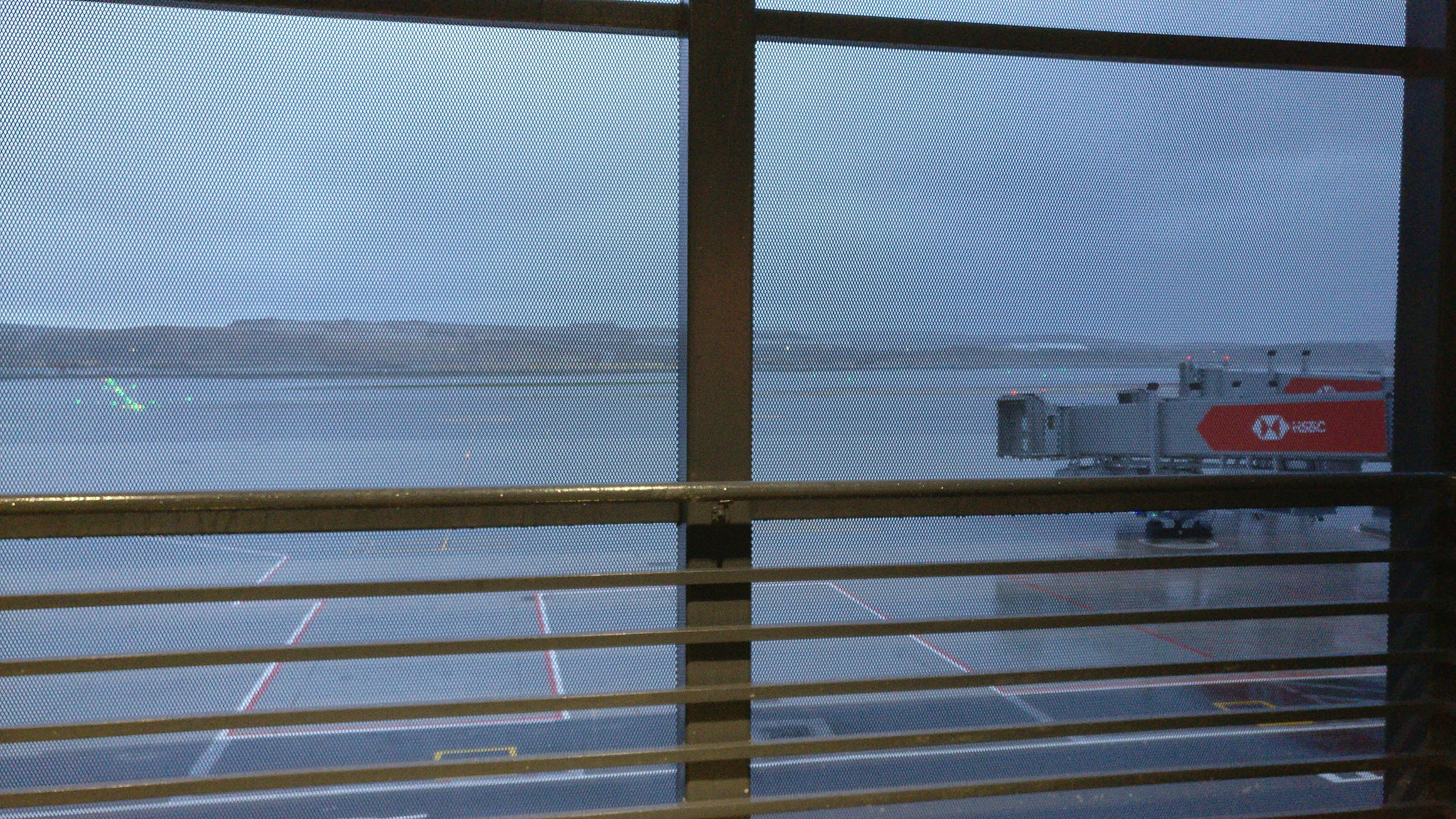 Smoking terrace in the Gate D area, at the far end of Wing D. This is the closest smoking area to the business class lounge.