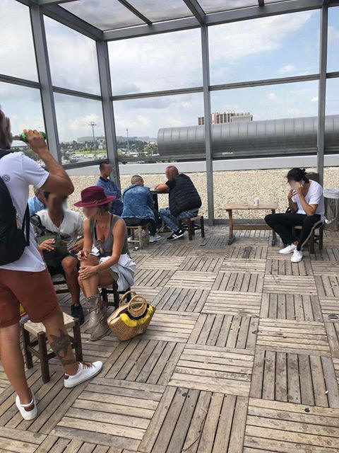 Smoking terraces at the far ends of Wings A and B. Typically quieter than the central junction terraces.