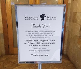 Этот крытый зал для курения ранее располагался в зоне C, в центре, между выходами C39 и C40, рядом с рестораном Timberline. Вход стоил 3 доллара (за первый напиток), и при предъявлении чека разрешался повторный вход в тот же день. Официально он закрылся 28 февраля (год не указан, но отзывы относятся к марту 2018 года), как видно из вывески на изображении 1, из-за условий аренды.